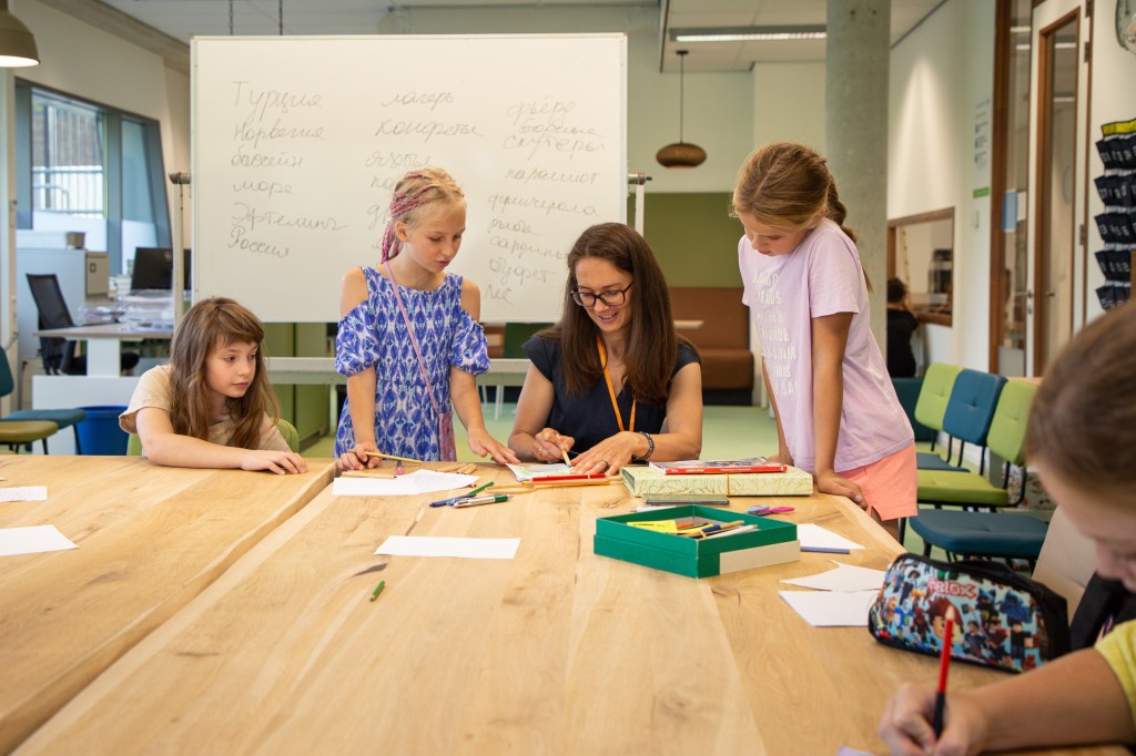 Дети в школе получают языковое, музыкальное, театральное, арт-образование. Получают новый социальный опыт, ближе знакомятся, дружат и приобретают культурный код. Дети участвуют в концертах, постановках, арт-инсталяциях, походах в музей, мини-представлениях в группах, праздниках, квестах… Дети развивают таланты, навыки презентации и само-презентации. Дети с удовольствием ходят в школу! Потому что здесь дружно и тепло.